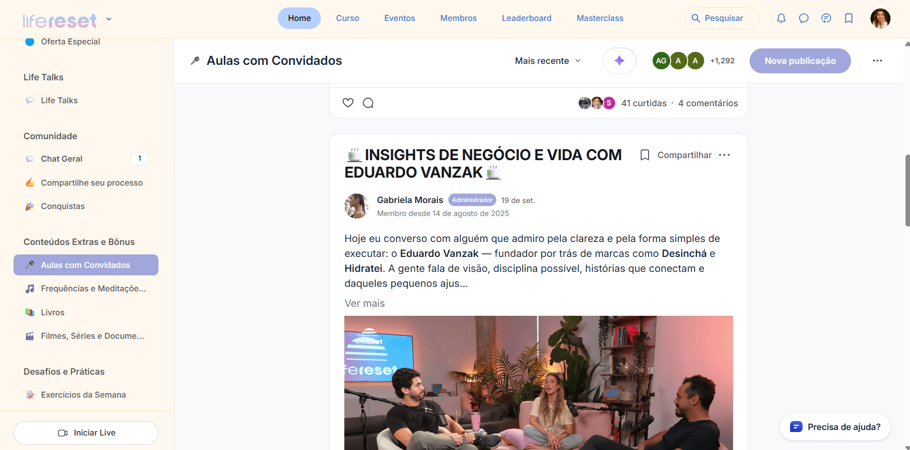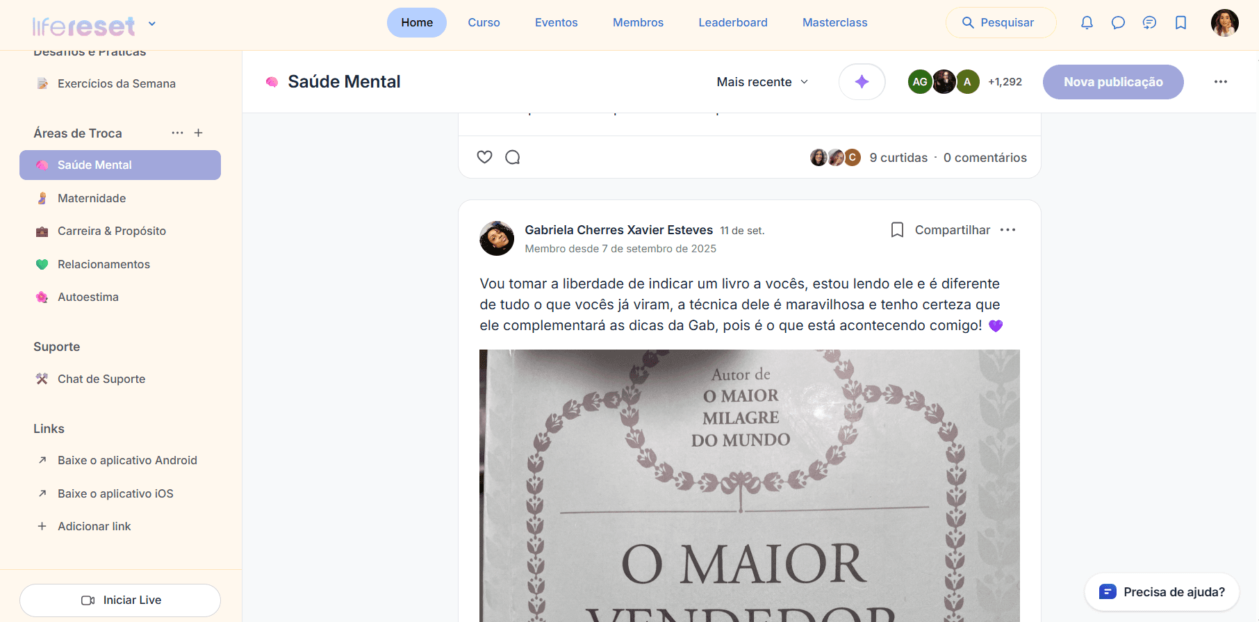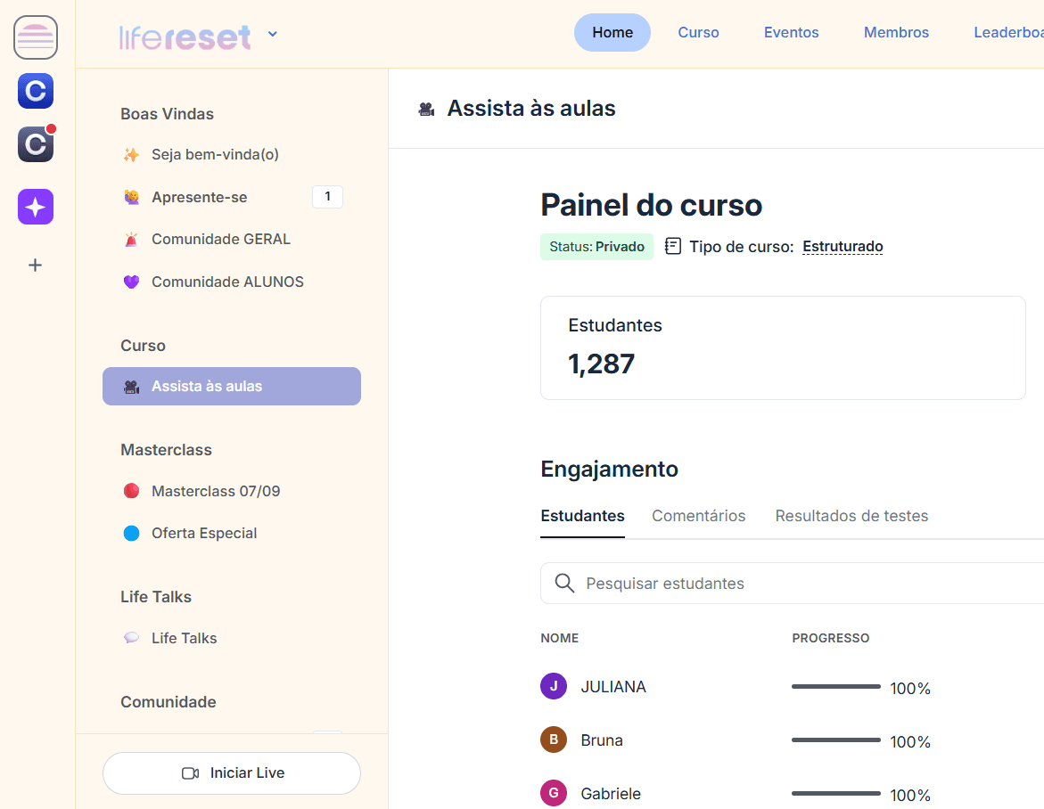 O Life Reset pra mim foi uma mudança de autoconhecimento muito rápida. Eu já tinha lido vários livros, mas nenhum foi tão prático e direto ao ponto quanto a Gábi. É também tem a comunidade, um local de bate papo e de aprendizado mútuo, onde existem outras pessoas com o mesmo propósito que nós. Só tenho coisas boas a falar e tive grandes experiências com o curso, obrigada!